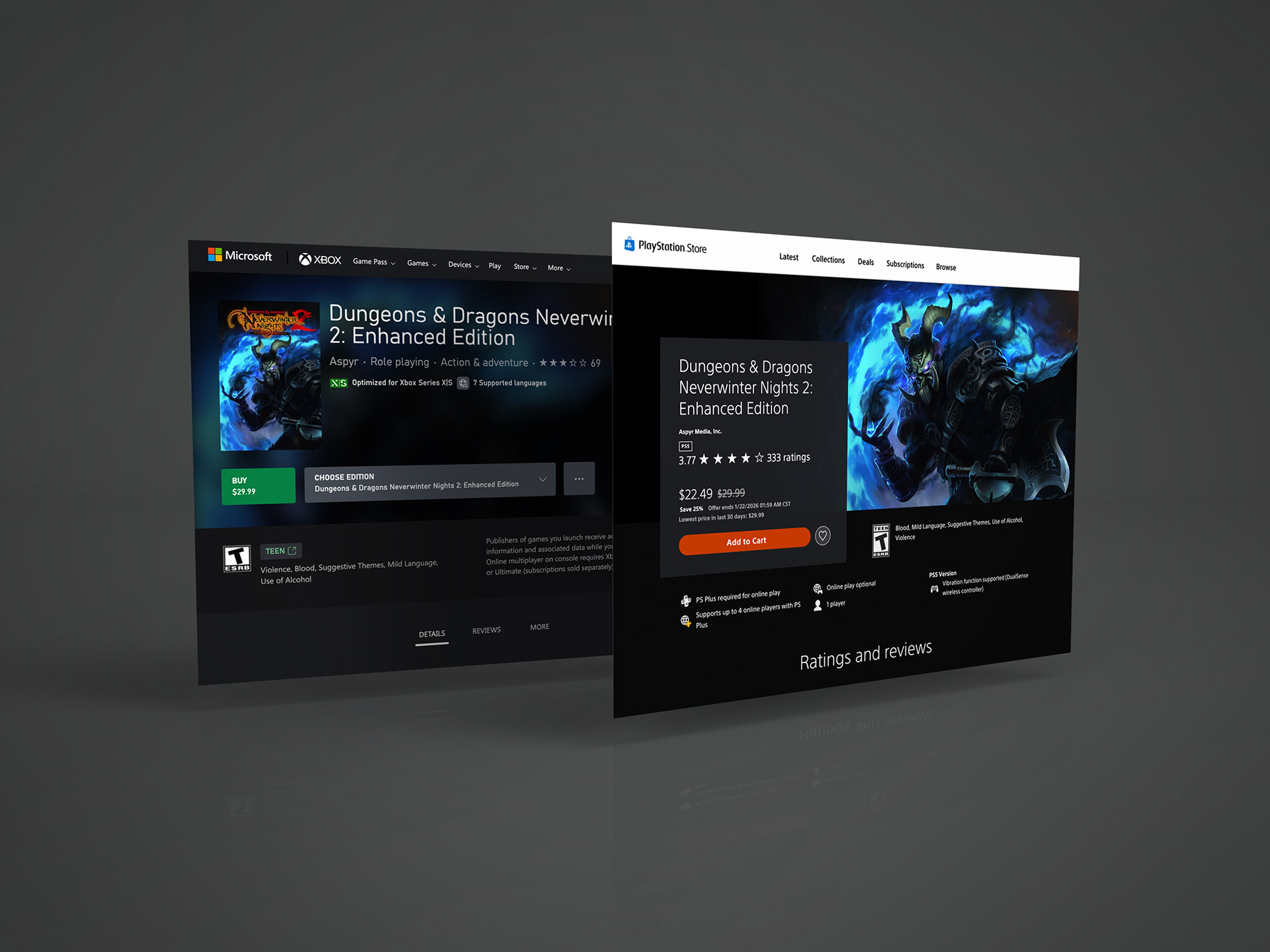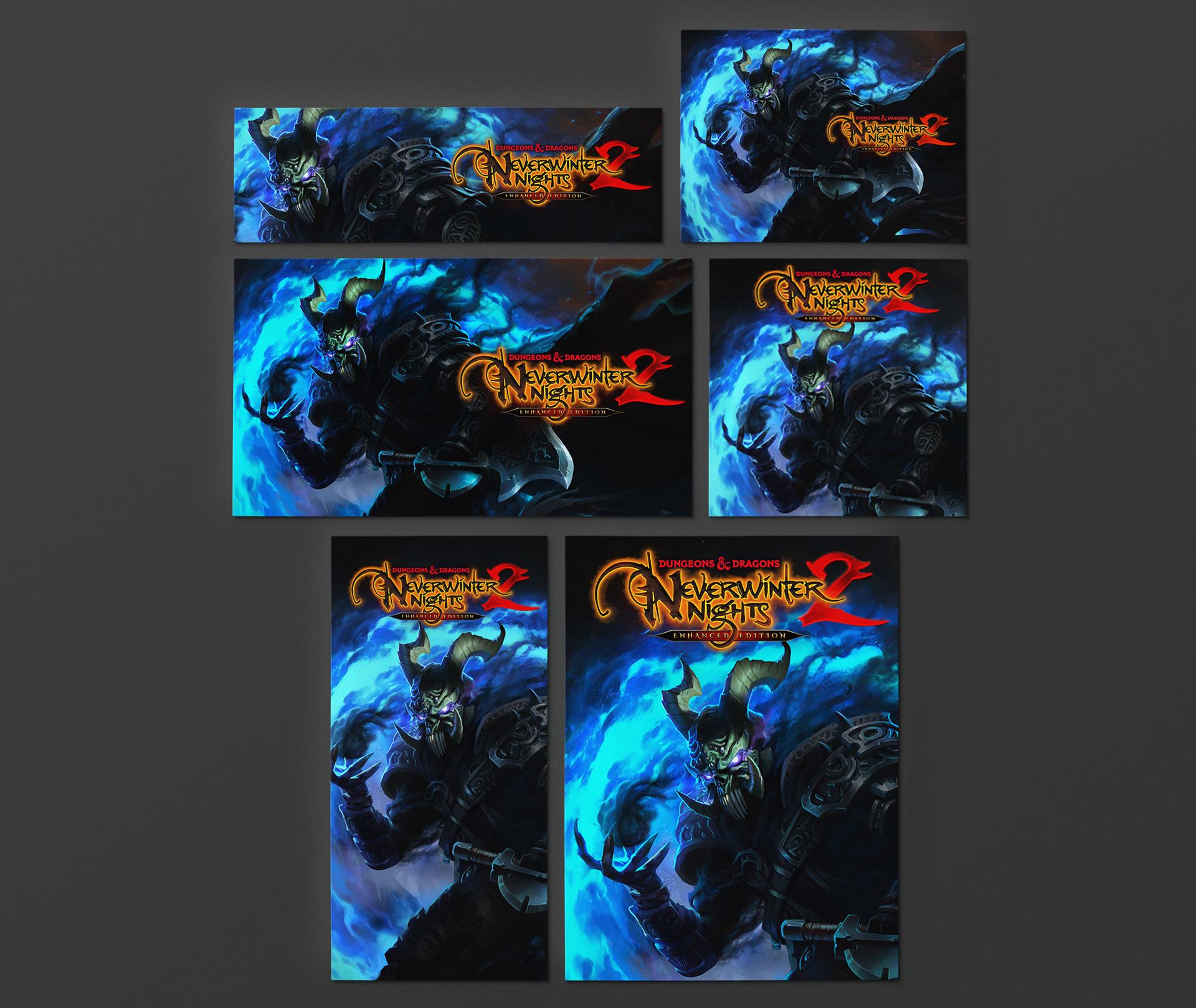 For Aspyr’s re-release of Neverwinter Nights 2, I adapted existing key art into cohesive marketing assets across multiple digital storefronts. The work focused on clarity, consistency, and impact at every size, helping the game stand out in crowded online marketplaces.